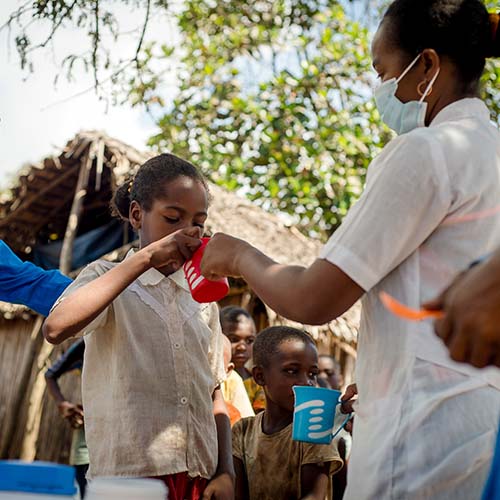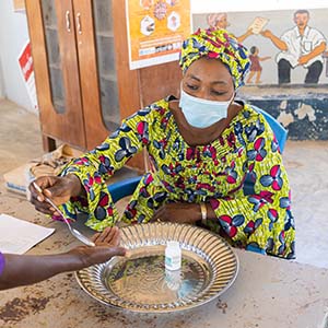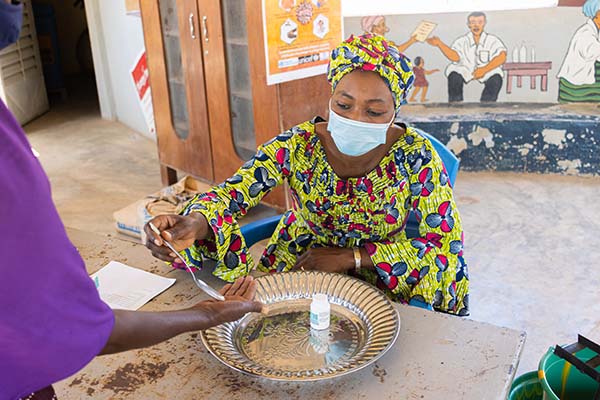 Minata Coulibaly is one of more than 3,000 CHW in Mali and has been working for over ten years in the Koulikoro Region of southwestern Mali. Equipped with gloves and masks to protect herself and her community, she went door-to-door making sure everyone in her community received treatment for river blindness. “Ivermectin has been of great benefit to our community,” she says.